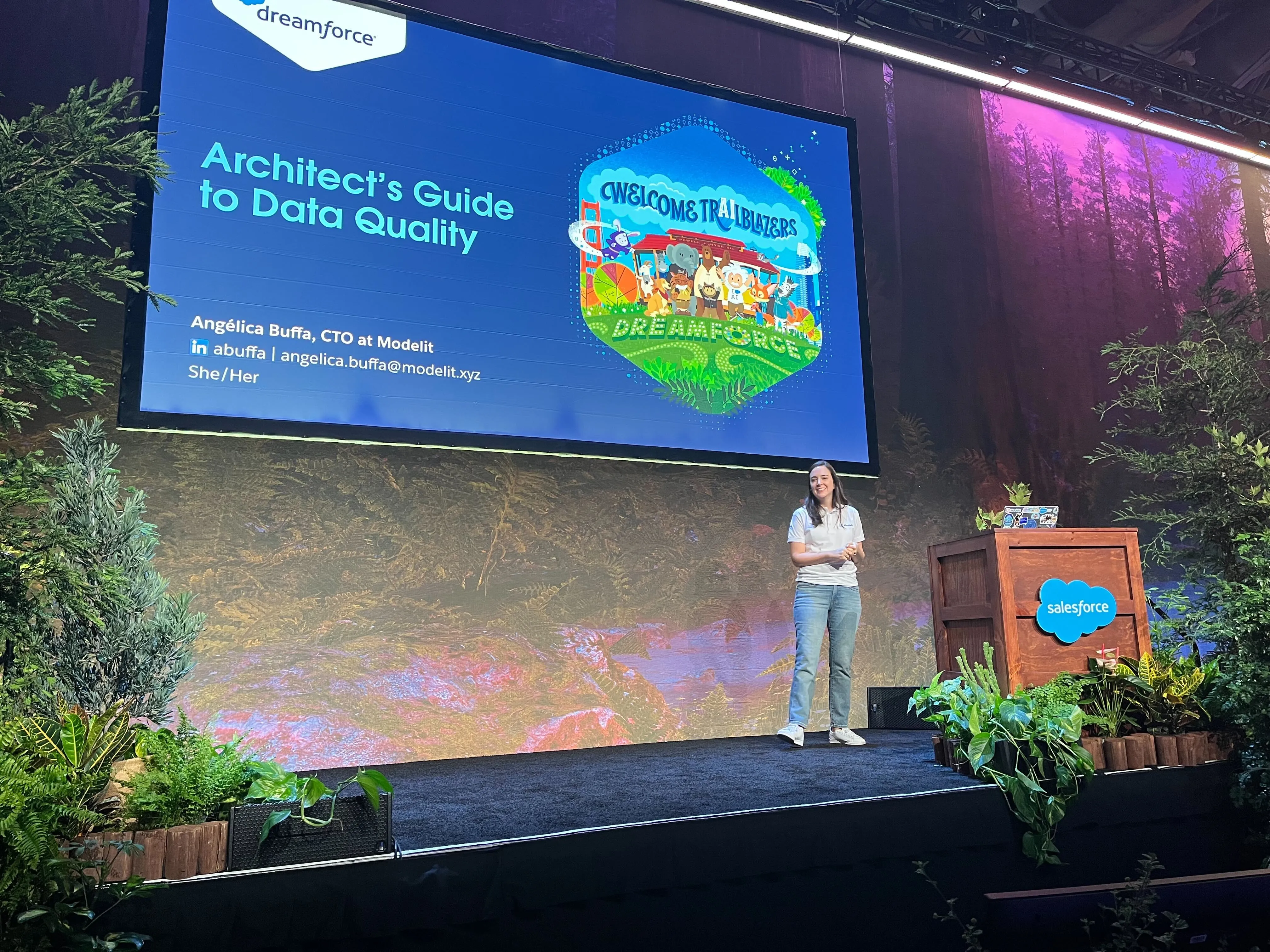 At this year’s Dreamforce, Modelit was proud to take part in three different sessions. Our very own CTO and Salesforce MVP, Angelica Buffa, led talks on the topics of AI (with assistance from Modelit COO, Diego Febles), data quality, and Salesforce architecture.